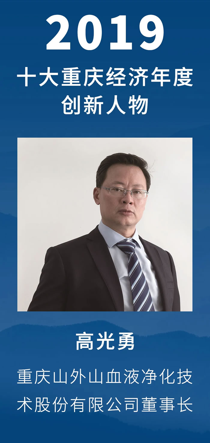 本屆評選以“開放、智慧、創(chuàng)新、穩(wěn)健”為主題,緊扣時代特征,展現(xiàn)年度經(jīng)濟(jì)亮點,設(shè)立2019十大重慶經(jīng)濟(jì)年度人物、2019十大重慶經(jīng)濟(jì)年度創(chuàng)新人物。同時,還評選出2019十大兩江新區(qū)經(jīng)濟(jì)年度人物,首設(shè)2019十大重慶經(jīng)濟(jì)年度人物·社會責(zé)任獎。重慶山外山血液凈化技術(shù)股份有限公司董事長高光勇榮獲“2019十大重慶經(jīng)濟(jì)年度創(chuàng)新人物”。